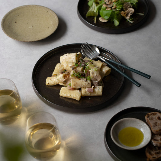 釉薬による青みがかった黒色で、複雑で奥行きのある表情を見せてくれる光悦(こうえつ)のシリーズ。高級感のある風合いは、テーブルを上品にまとめてくれます。【注意事項】